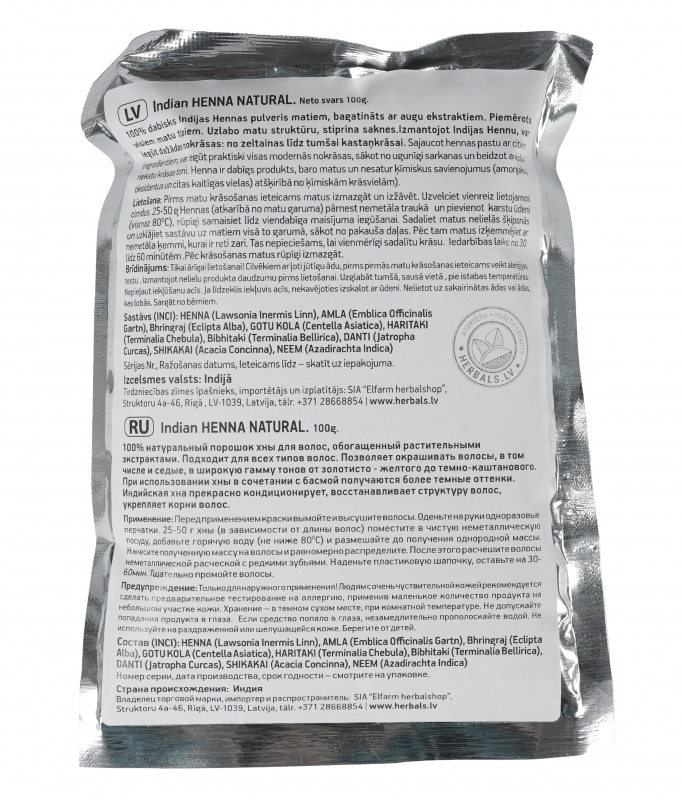 • Henna (Lawsonia Inermis Linn) - dyes hair, nourishes and strengthens hair roots, eliminates dandruff
