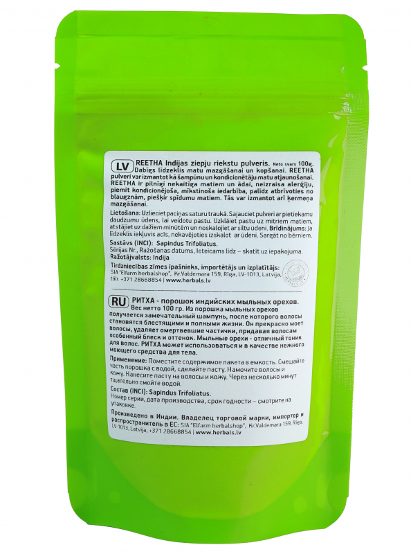 For hair, Reetha is a true treasure — it strengthens the roots, adds shine, volume, and silky softness. With regular use, hair becomes lively, manageable, and healthy-looking, while the skin remains clean, soft, and supple.