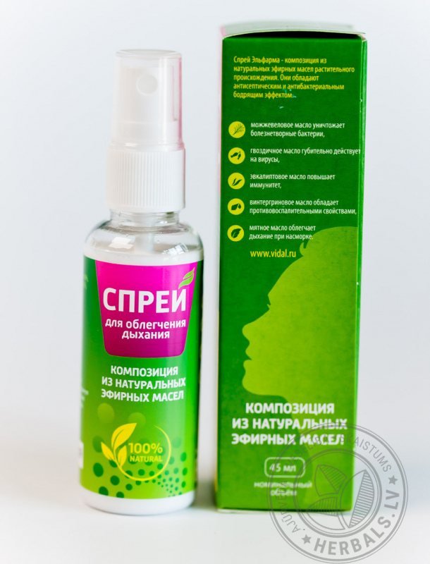 Spray for relief of breathing ELFARMA is a composition of 7 essential oils of plant origin.