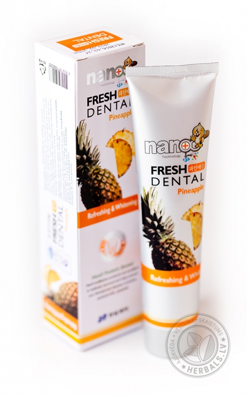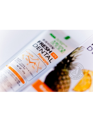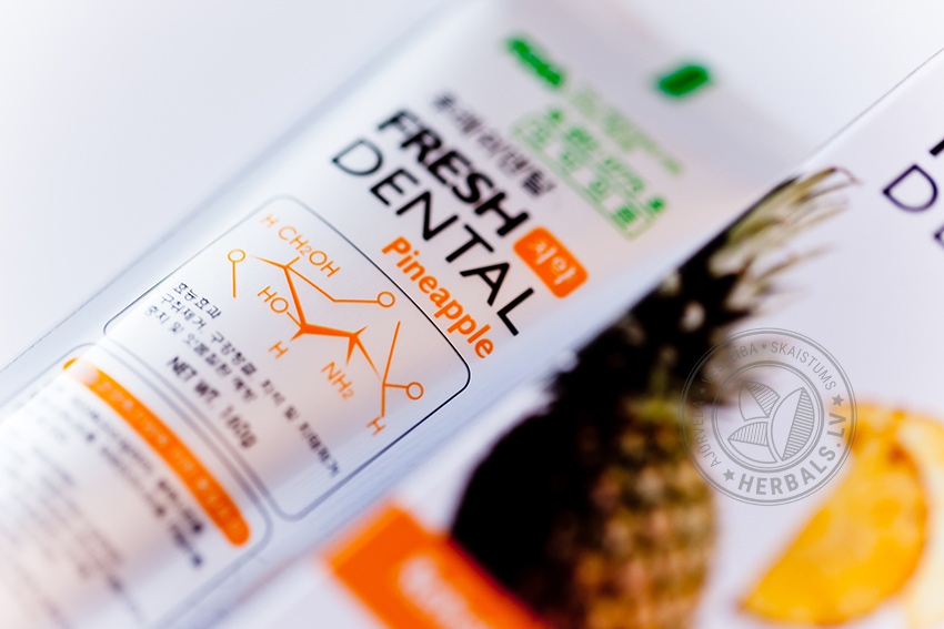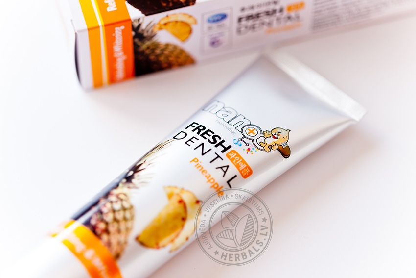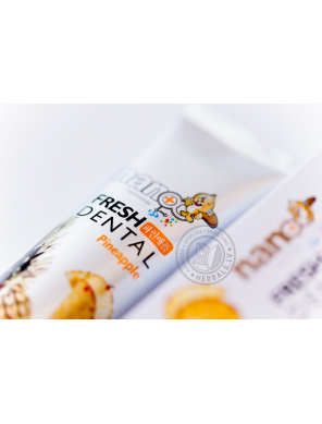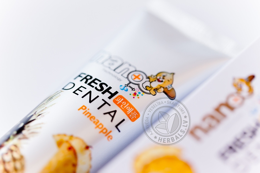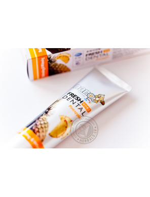 Pasta has antiseptic and aromatic qualities, strengthens the gums and tooth enamel. Natural fruit – apple, pineapple, grapes and mangoes - extracts protects against dental caries.