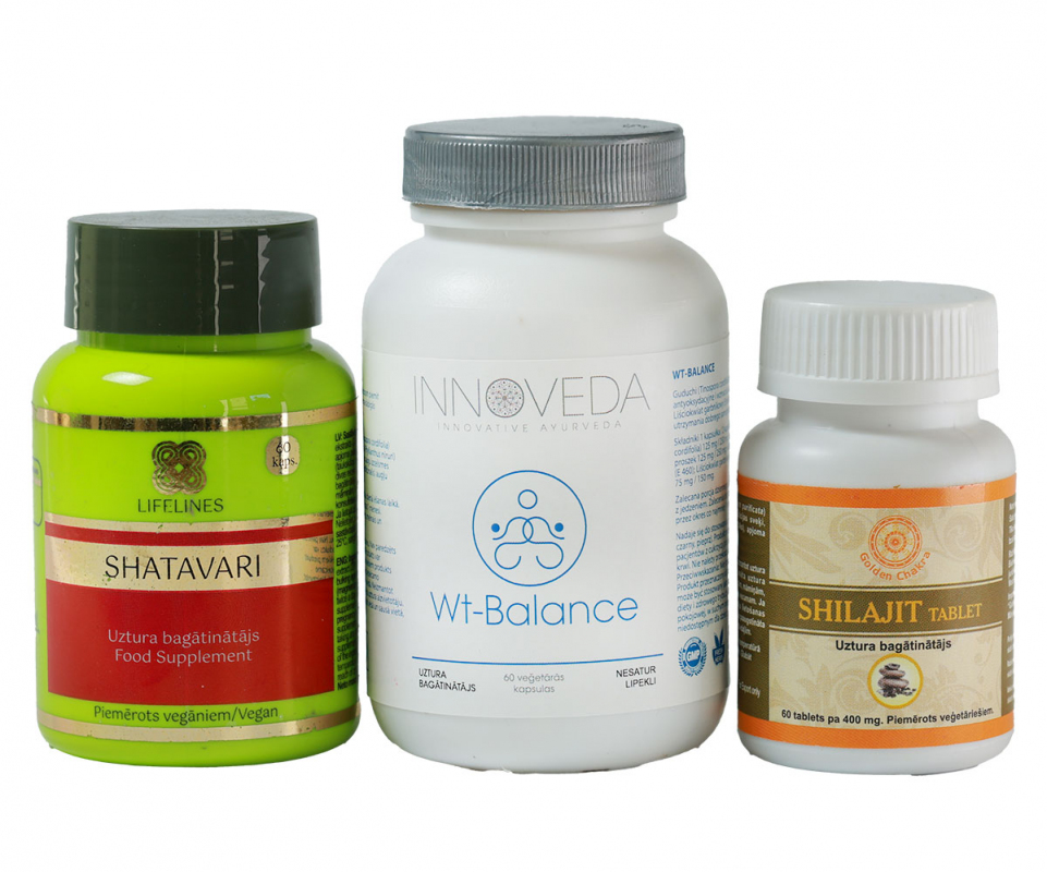 WOMAN’S ESSENTIAL COMPLEX ir trīs dabisku ajūrvēdas produktu kombinācija —