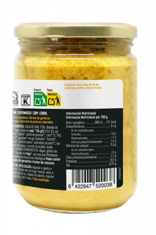 Spongy Seitan with Curry ir gatavs lietošanai augu izcelsmes produkts uz kviešu proteīna (seitāna) bāzes ar aromātisku karija garšvielu maisījumu. Tas ir pilnvērtīgs augu izcelsmes gaļas aizvietotājs, kam piemīt poraina, “sūklim līdzīga” tekstūra, kas lieliski uzsūc mērces un garšvielas, saglabājot maigu un sulīgu konsistenci.