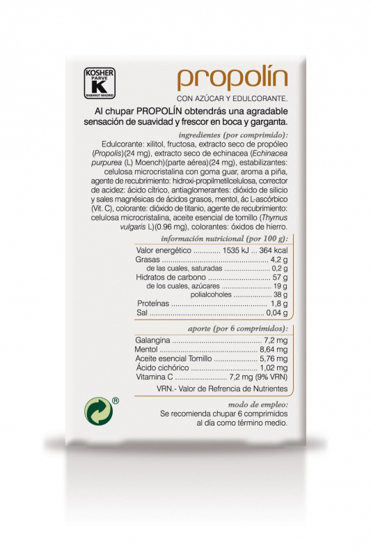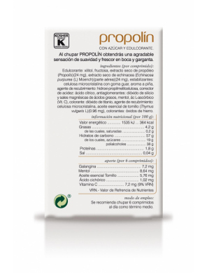 PROPOLIN — košļājamās tabletes rīklei uz propolisa bāzes ar augu ekstraktu un C vitamīna piedevu. Produkts izstrādāts, lai atbalstītu organisma dabiskās aizsargfunkcijas, kā arī rīkles un mutes dobuma kopšanu, īpaši paaugstinātas slodzes periodos imūnsistēmai. Košļājamā forma nodrošina ērtu lietošanu un pakāpenisku aktīvo vielu izdalīšanos.