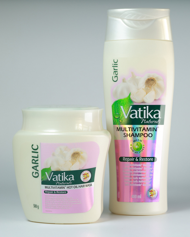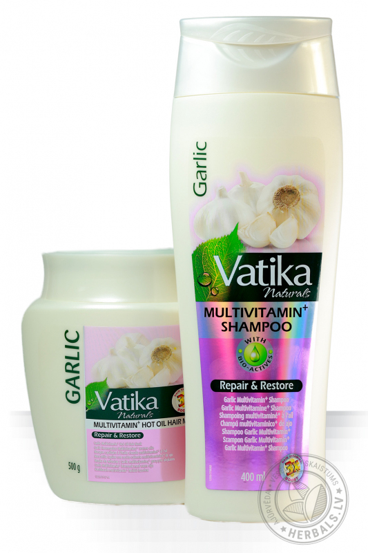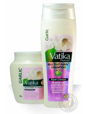 Dabur Vatika Naturals Garlic dabīgās matu maskas ar ķiploku ekstraktu pamatā ir Spānijas ķiploku ekstrakts. Maska ļoti efektīvi aizsargā matu šķipsnas no lūšanas un izkrišanas, kā arī atdzīvina un piešķir matiem papildus spēku un spīdumu.