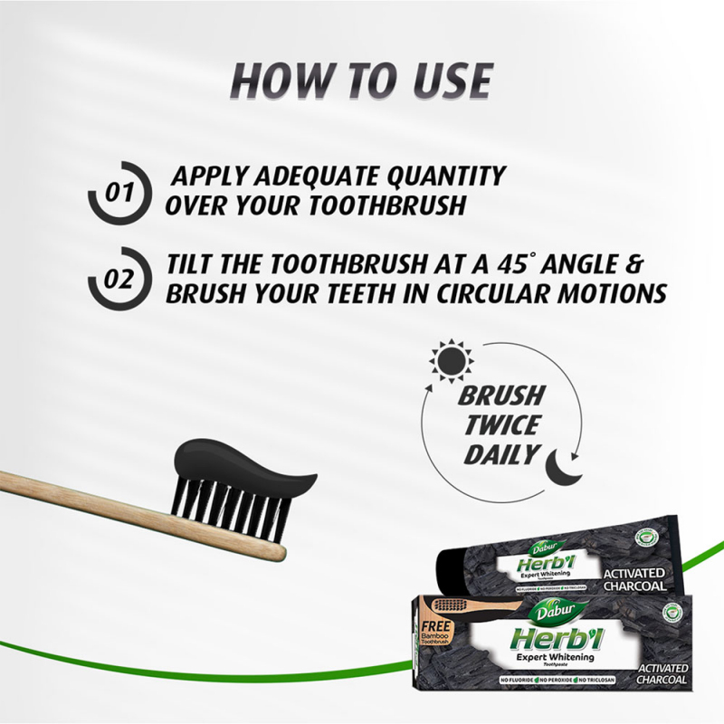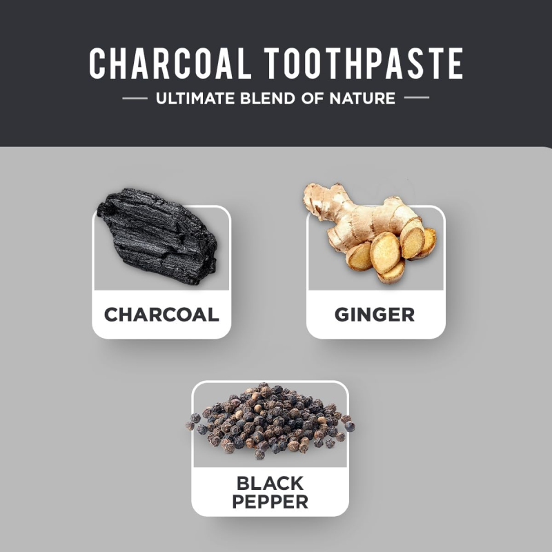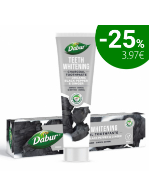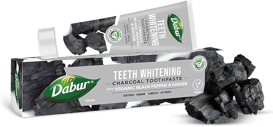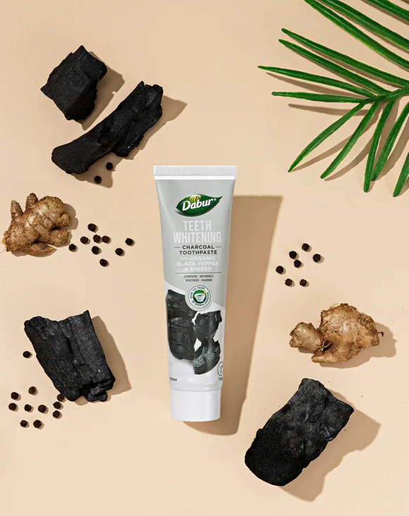 Dabur kokogļu zobu pasta ar organiskajiem melnajiem pipariem un ingveru ir unikāls dabas labāko un efektīvāko sastāvdaļu, piemēram, ogles, ingvera un melno piparu, maisījums. Aktivētajai oglei ir sena un pierādīta vēsture kā spēcīgai un efektīvai mutes dobuma kopšanas sastāvdaļai. Dabur kokogļu zobu pastai ar organiskajiem melnajiem pipariem un ingveru piemīt aktīvās ogles spēcīgas balinošās īpašības, lai noņemtu traipus un atstātu jūs ar žilbinoši baltu smaidu.